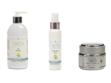 Target and fight acne in each step of your skincare routine with the Clarify Acne Kit. This kit includes a full-size Gel Cleanser, Perfecting Toner, and Light Day and Night Cream.